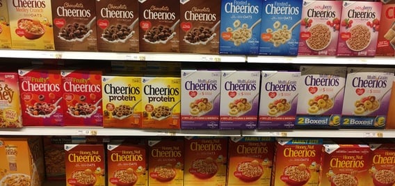 General Mills features 13 different varieties of Cheerios available on its website — including the original, Apple Cinnamon, Ancient Grains, Protein Cinnamon Almond and Very Berry. Mars, the manufacturer of M&Ms, has nearly a dozen varieties of the candy listed, such as Almond, Dark Mint, Pretzel and Mega Chocolate.