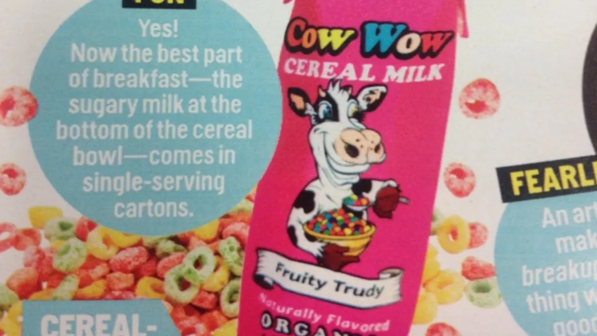 - When you were a kid did you drink the leftover milk from a bowl of cereal? Good huh? That's the inspiration behind Cow Wow Cereal Milk.
