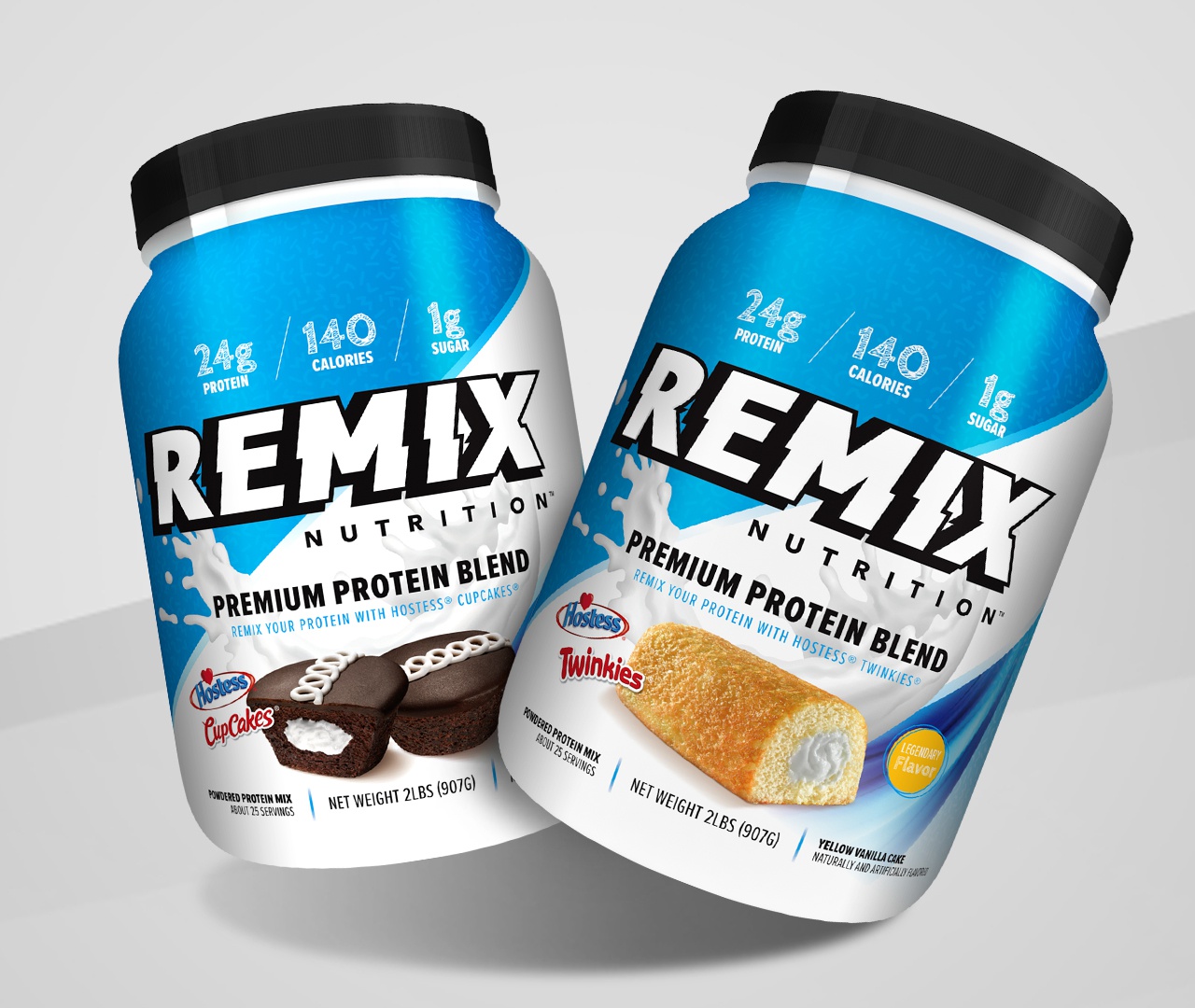 Bodybuilding.com and Hostess Brands are introducing protein powder flavors under new brand Remix Nutrition, flavored like Hostess Twinkies and Chocolate CupCakes.