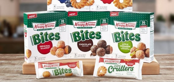 The Doughnut Bites will be available in Original Glazed, Chocolate and Apple Cinnamon, while Mini Crullers will be offered in Original Glazed and Blueberry. Krispy Kreme also will offer seasonal flavors at Walmart, starting with new Strawberry Doughnut Bites and Lemon Crullers.