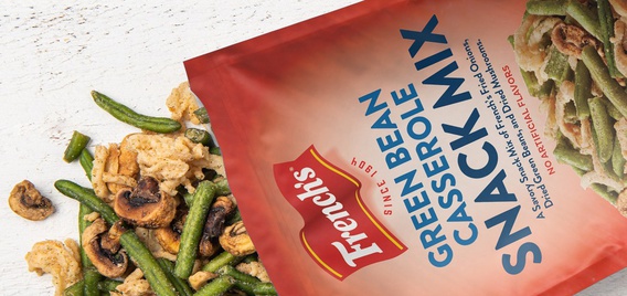 McCormick's French's brand is launching a Green Bean Casserole Snack Mix to replicate the Thanksgiving table staple in a portable way. The mix features freeze dried green beans and mushrooms, flavoring of spices, onions and sour cream, and of course the French’s Fried Onions that usually top the dish.