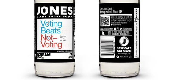 With the presidential election two months away, Jones Soda is turning the labels on the outside of its bottles into a makeshift billboard to encourage Americans to do their civic duty.