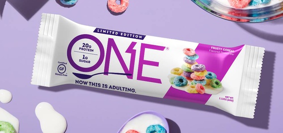 One Bar’s newest offering aims to recreate the taste of that sweet start to the morning with One Fruity Cereal Bar. The bar, which has 20 grams of protein and 1 gram of sugar, is described as having a gooey fruit-flavored center surrounded by icing.