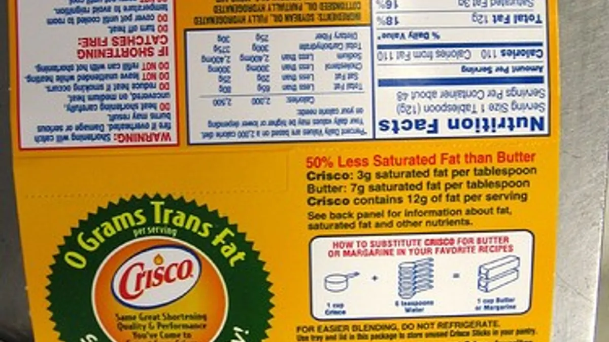 - Crisco shortenings, despite containing less than 0.5g trans fat per serving, still contain small amounts of partially hydrogenated palm and soybean oils, and the company's Uncrustables frozen sandwiches have partially hydrogenated soybean oils.