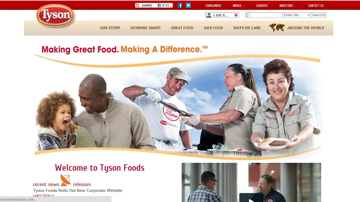 - Tyson Foods announced the launch Thursday of its new corporate website at TysonFoods.com, featuring visual, graphics and hundreds of its employees to tell the story behind the top meat and poultry company in the U.S.