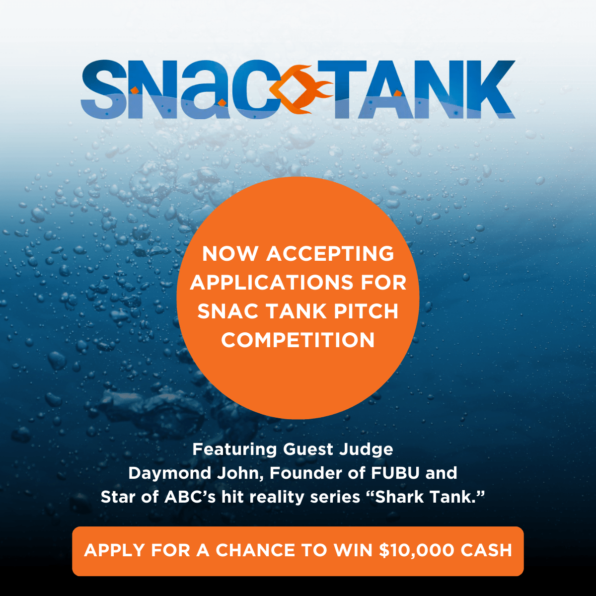 What: SNAC International is excited to announce the third SNAC Tank Pitch Competition. Featuring guest judge Daymond John, Founder of FUBU and Star of ABC’s hit reality series “Shark Tank”, the competition provides innovative start-up snack brands the opportunity to compete for a $10,000 prize! Participants are invited to submit a two-minute video pitch detailing their product and brand, as well as product samples. SNAC is currently accepting applications and encourage all start-up snack creators to apply!