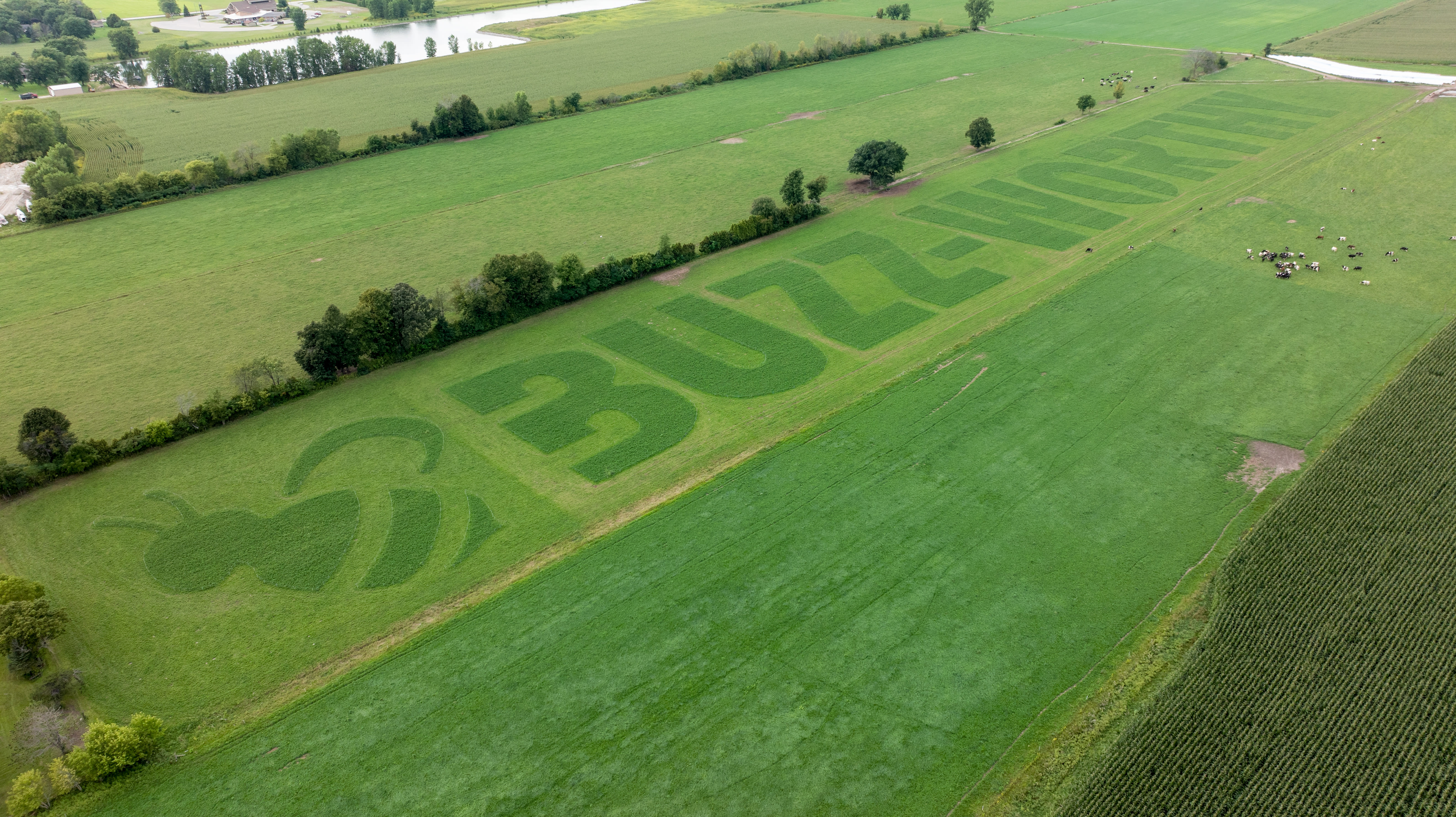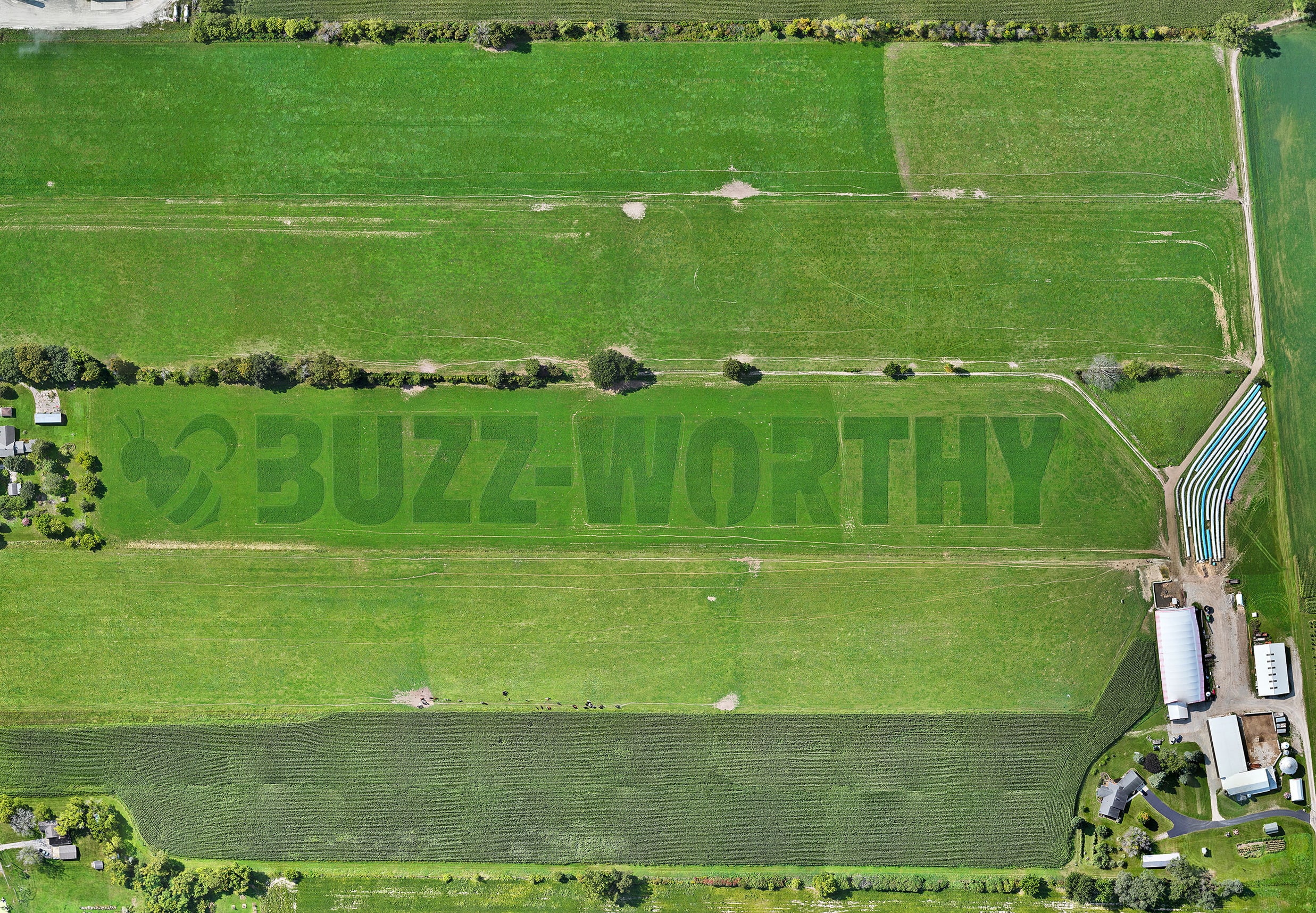 LA FARGE, Wis., September 26, 2024 — Organic Valley®, the leading farmer-owned organic cooperative, has unveiled an innovative new way to create ads: cows grazing pasture to spell out letters. Cows on three Organic Valley farms across the country are eating pasture grasses around strategically placed fences that form the word "BUZZ-WORTHY" and an emoji-like bee. The ads are eye-catching, environmentally friendly and beneficial for the ecosystem. They provide habitat for pollinators, such as honeybees, and prevent soil erosion and water runoff. All materials from the zero-waste ads are reused as feed or fencing.