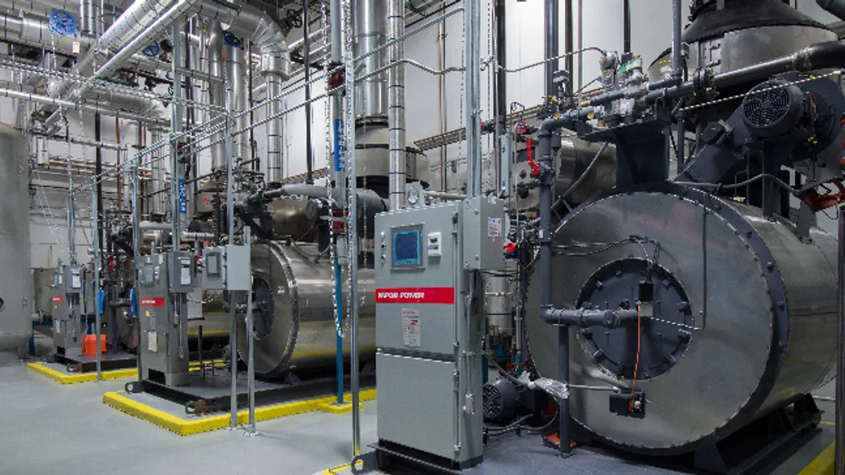 The Circulatic steam generators are perfect for those with limited space but are looking for a boiler with a high capacity. This Circulatic steam generator is available in capacities up to 600 BHP, though fits in less space than a typical 300 BHP firetube boiler. Their compact footprint means savings on construction costs and rapid response to load changes.
